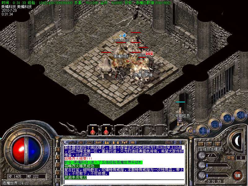 h.烟花秘穴:每30分钟刷新一只暗之赤月恶魔,一小时一只烟花教主.需要放九珠连环炮进入