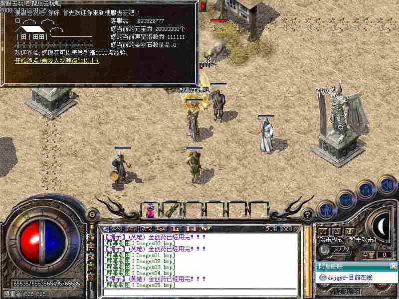 4、消灭魔龙怪物,各种金矿、元宝爆率中。
