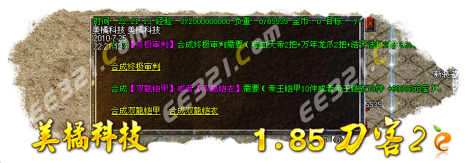 ★ 本服武器最高升级7点,成功率80%.升级时间为5分钟!双7武器不再是梦想!!!