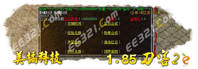当前版本名称:美橘科技-轻变之王-1.85刀客Ⅱ元素内挂全明文无错版