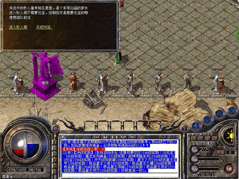 游戏无任何漏洞进行刷元宝,赌博无任何规律,修复箱子卡装备,完善各种功能!