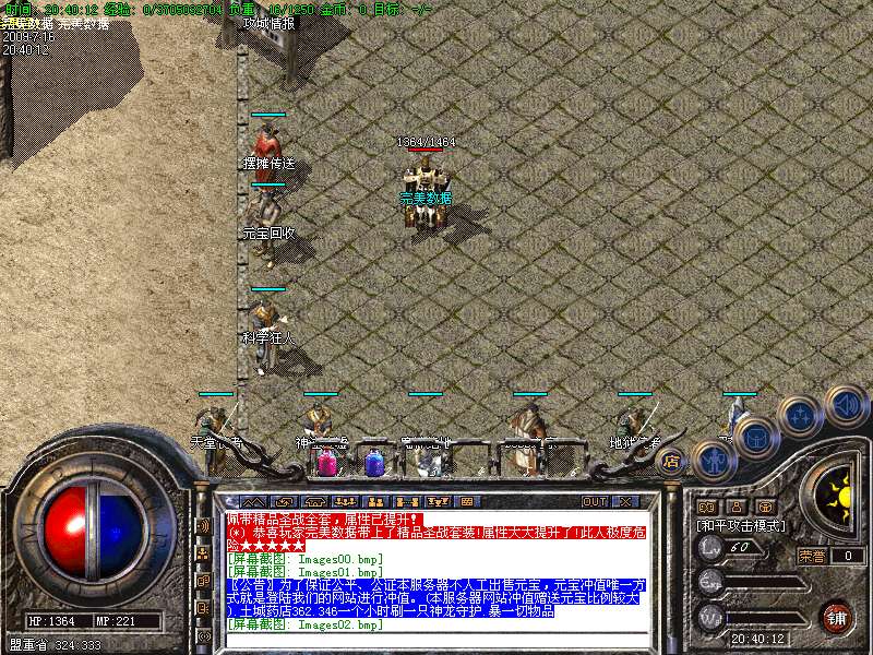 〖公告〗新手玩家请到祖玛打取祖玛装备换取元宝或者去地下宫殿打小怪直接爆经验卷, 新增终极之里和魔神绝地 里面怪爆终极装备.土城药店362.346一个小时刷一只神龙守护.暴一切物品