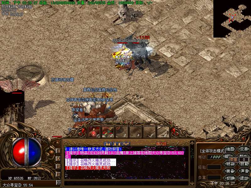 温馨提示:在土城 338 341 有个"装备回收员",在那里玩家可以把多余的高级装备兑换成元宝.