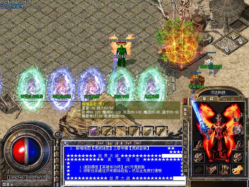 ①.天下第一:每职业等级第一名随时在土城左下角申请,可获得1.2倍攻魔道!