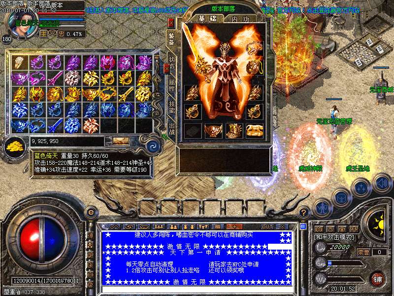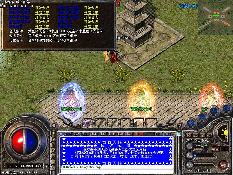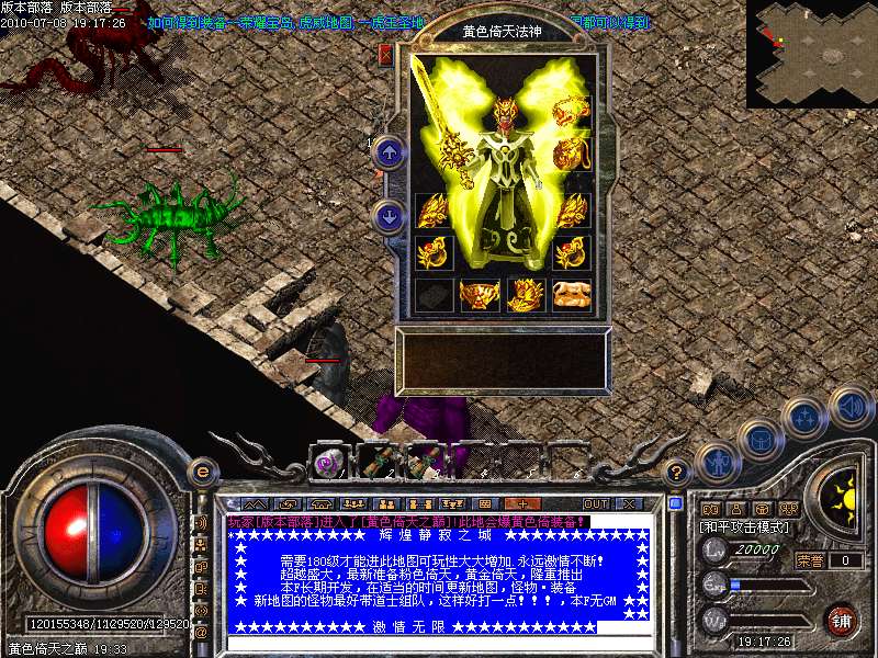 游戏介绍③: 更新最新装备与技能 七彩倚天 战天套 必杀套 巨毒麻痹 黄金热血之刃 黄金至尊屠龙
