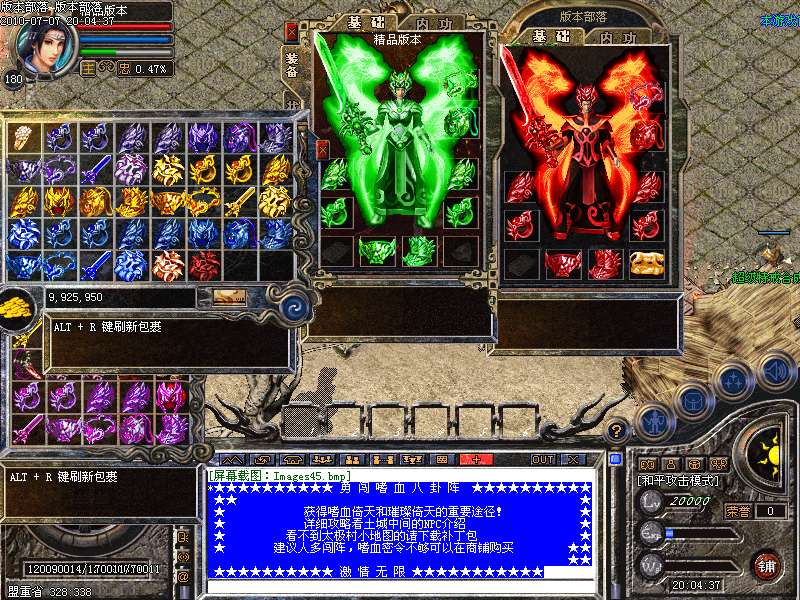 游戏介绍⑤: 游戏装备很好打。回收所有装备。一小时可回收4-6千W元宝.