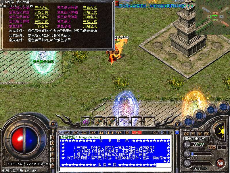 增加最新地图:七彩天堂之巅。此地图分7个地方。分别可以爆出七彩装备!