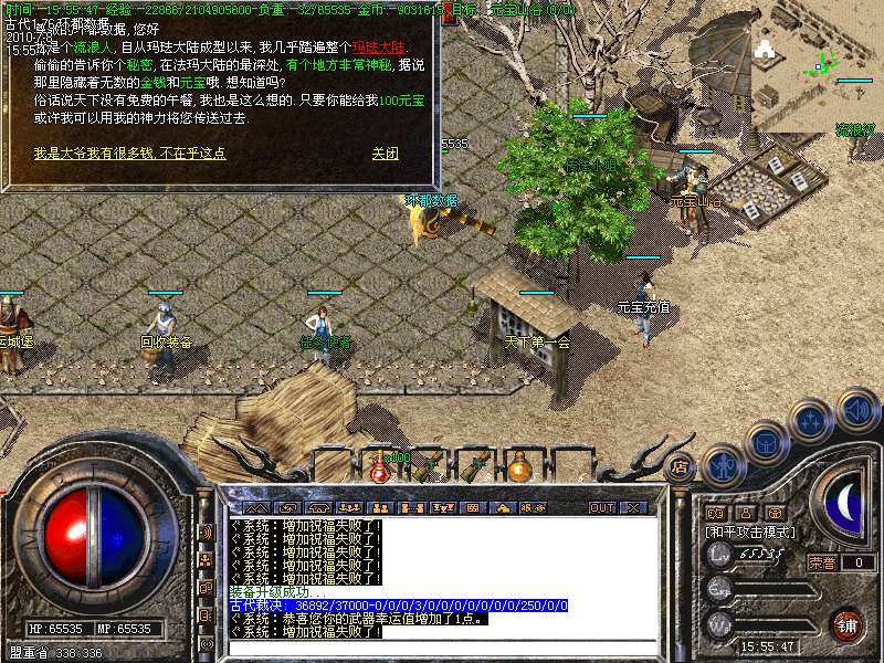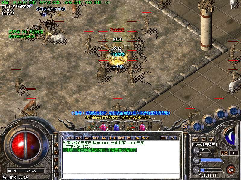 [冲级奖励] 玩家到达45级就可以100元宝奖励!也可以击杀[万年树妖]和[古代龙猪王]获得