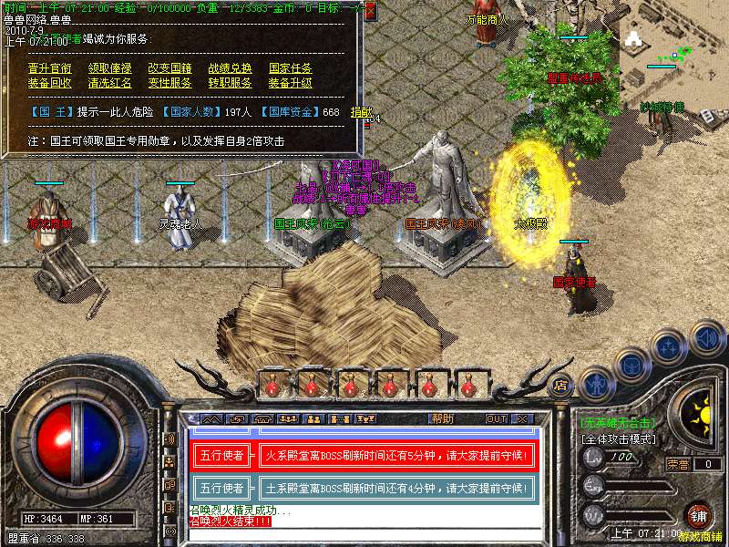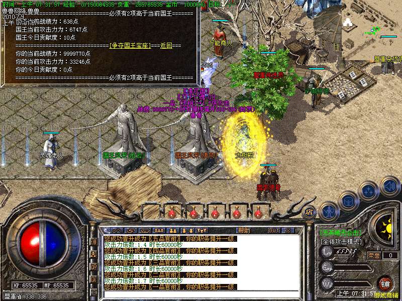 [攻城系统]:新区3天后攻沙奖励首届沙城城主10000元宝和超强属性城主权杖,老区天天激情