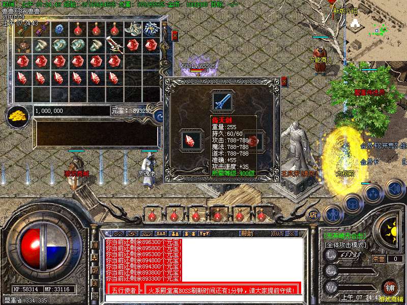 [游戏系统]:不卖装备,无管理,所有装备一切靠打.绝对人人平等!!!