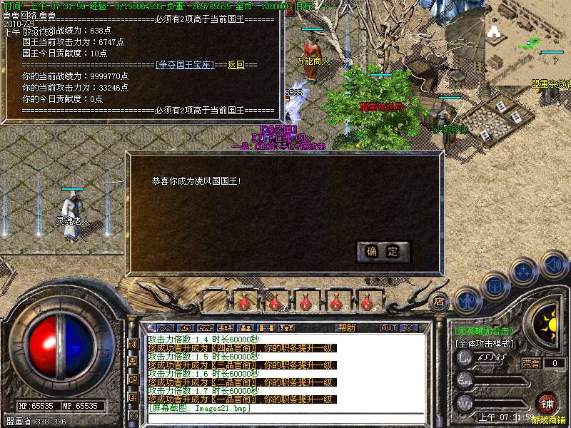 [国王系统]:三职业可在土城申请国王.申请后可以册封本国玩家官员!