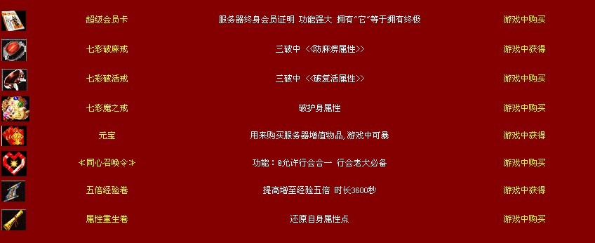④会员可以购买特殊药品 PK必备 是普通玩家的3倍!