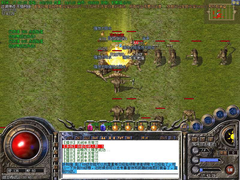 记得使用三倍经验卷并召唤宠物,群秒宠物可以帮你快速练级。五、六层需要元宝才能进入,当然经验奖励也同样相当的丰富,让你