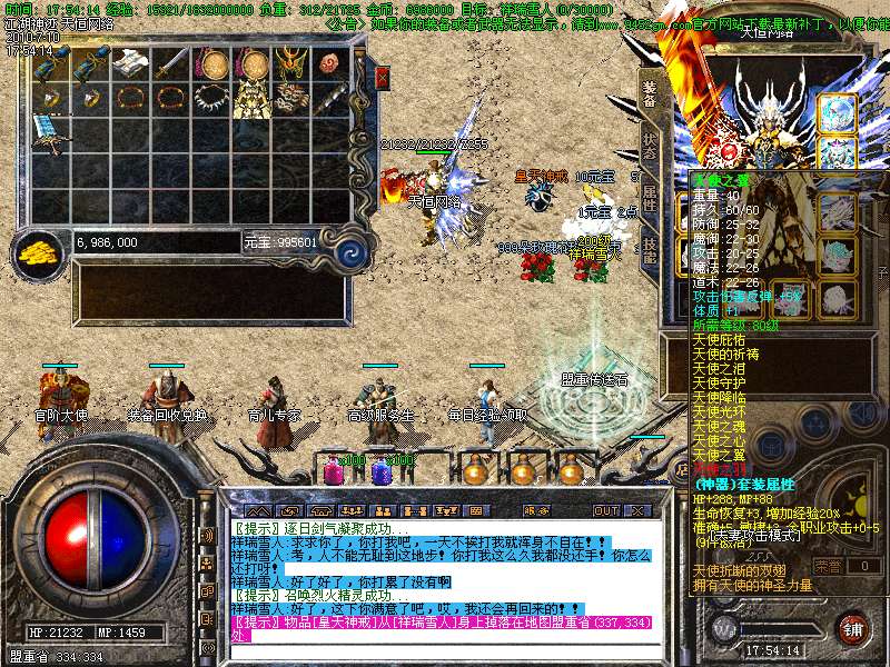 新增装备: 天使套装 魔神套装 双龍套装 六大门派神器