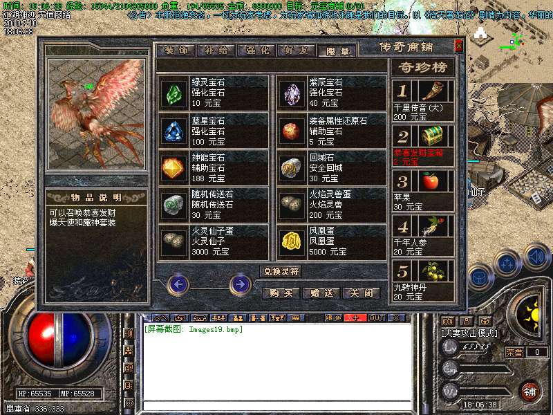 商业介绍: 千年雪霜包 元宝商店 摆摊系统