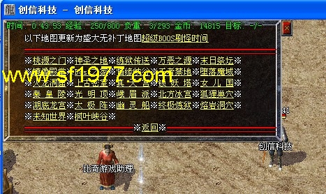 公告:高级装备攻略→上古合成(比奇城)→上古镶嵌(白日门)→2转装备(终极炼狱最后一层),每天中午12点30分举行年兽BOOS攻城,有几率爆出新技能