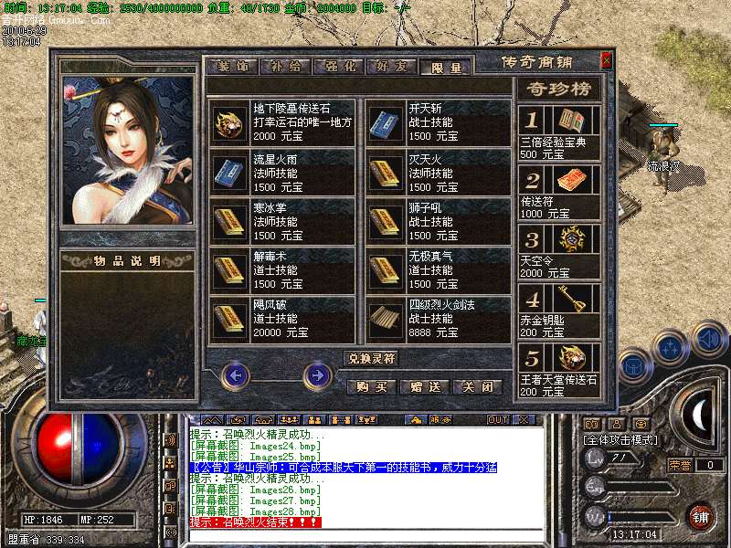 [版本特色01]六道轮回:此地图挑战性极高,每30分钟刷新一次BOSS,一至六道轮回教主都有机率暴出雷霆,和天之类武器 和新技能书!