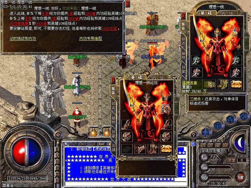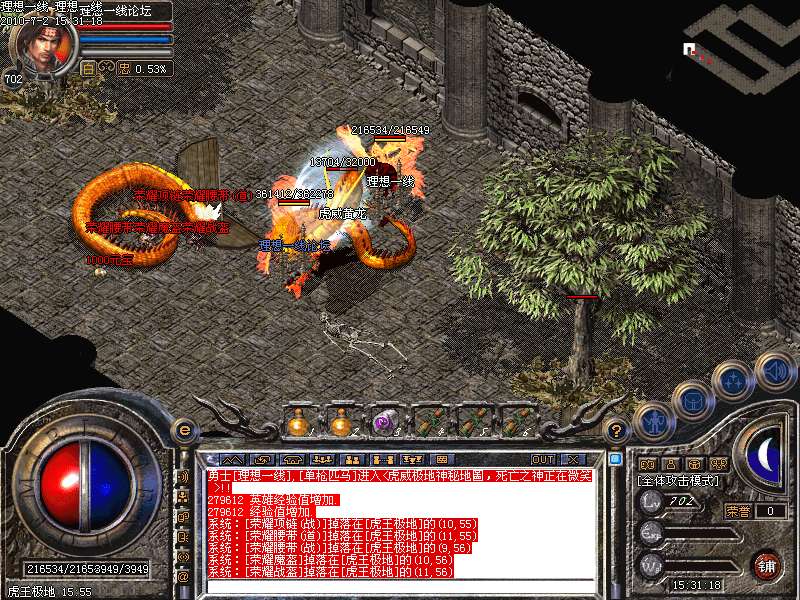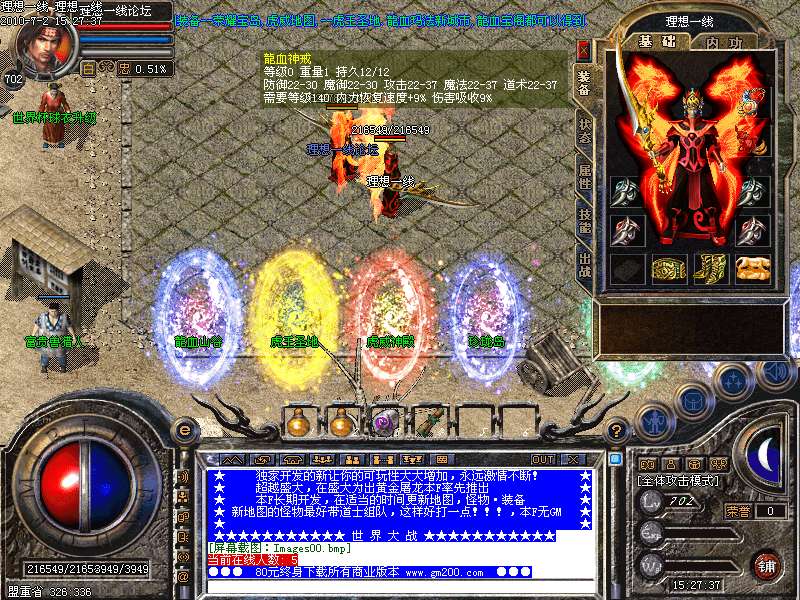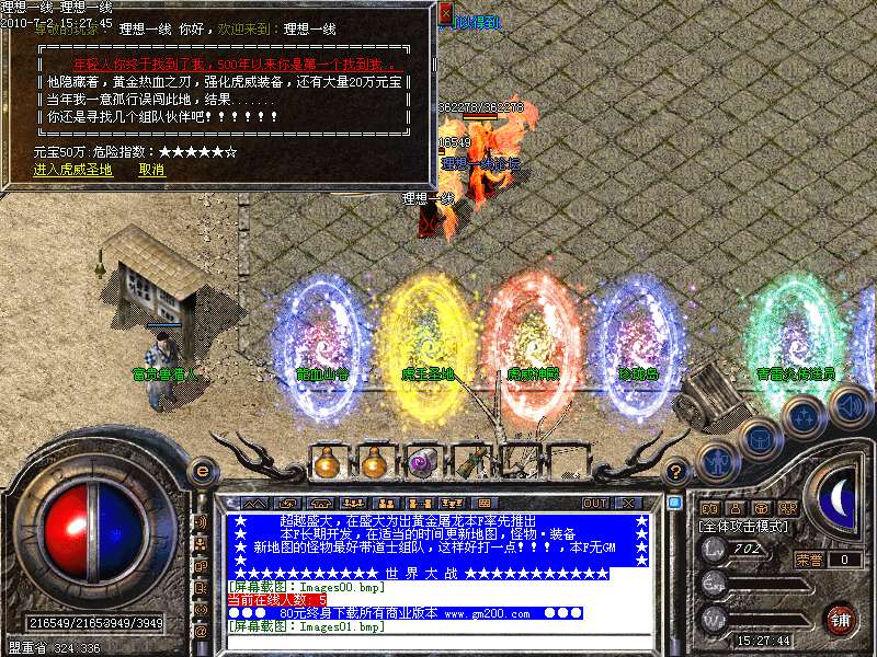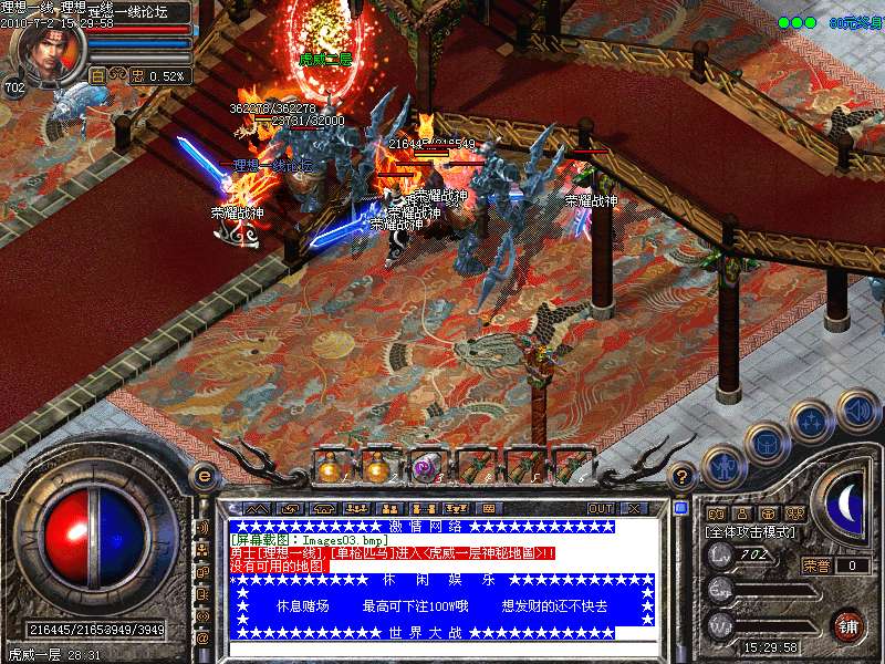 激情殿堂:每秒1200万经验200万内功经验!(可PK区域,可挂到本服顶级180级,内功200级)
