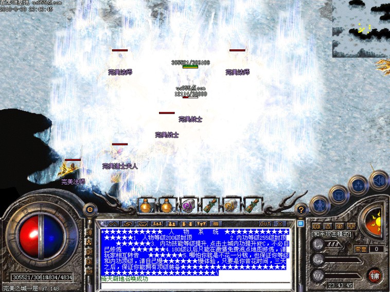 人物等级200级封顶 内功等级255级封顶,内功技能等级提升,点击土城内功提升NPC,不必自已修炼,180级以后只能在激情免费泡点地图修炼,请玩家相互转告,哪怕你就是不花一分钱,也保证你等级和内功顶级,请自己慢,慢体验,只要是你肯花时间,三天之后,保证你能拥有顶级装备.