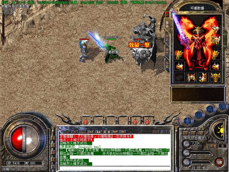【地图介绍】:增加新BOSS,暗之烟花教主60分钟一只,刷新地图:荣誉之都 烟花秘穴,烟花秘穴需要放九株连环炮随机进入!