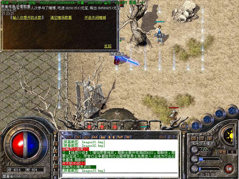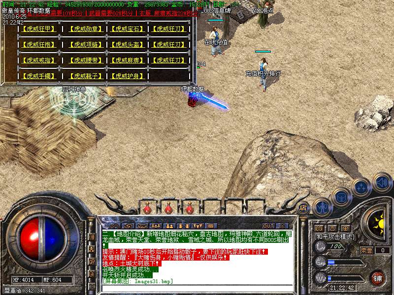 【地图介绍】:增加荣誉之都,刷新全服所有高级BOSS,刷新快,需要英雄证明进入,是兵家必挣之地,沙城员可以免费进入,英雄证明在六大暗之BOSS身上可以获得!