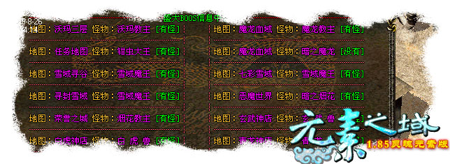 e.魔龙血域:60分钟刷新两只魔龙教主,一只暗之魔龙教主,一只教皇,暴战神.金牛.火牛.血牛.