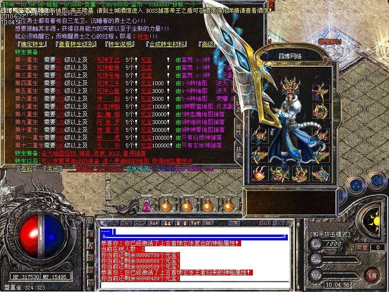 增加贵族地图.在贵族使者进入.需持有贵族令.贵族令在商铺购买.在背包中.不会掉落.地图掉1-10转 神.魔.轩辕装备.