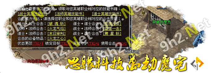 游戏介绍①: 人物.英雄上线即刻打通全部经络, 自动学会全部连击招式,内功送30级,无须大家再花钱学习.