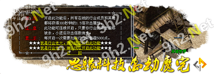 活动⑧:行会管理员,召集行会成员打行会荣誉值,可开启行会所有在线成员多种功能