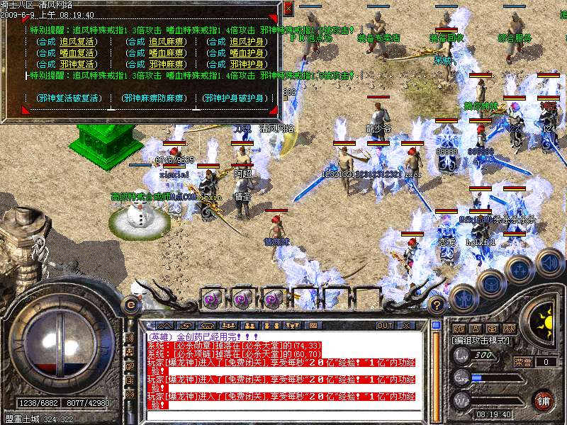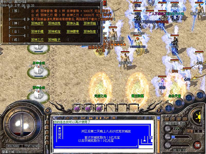 【游戏地图】本服新增玛法城市[终极殿堂],可以打到本服务器终极“邪神装备”。同时其他地图暴率全部上调,使非RMB玩家可以真正的感受到终极装备打怪获得!