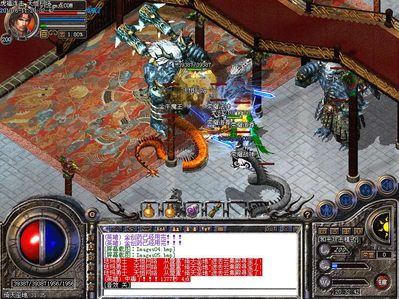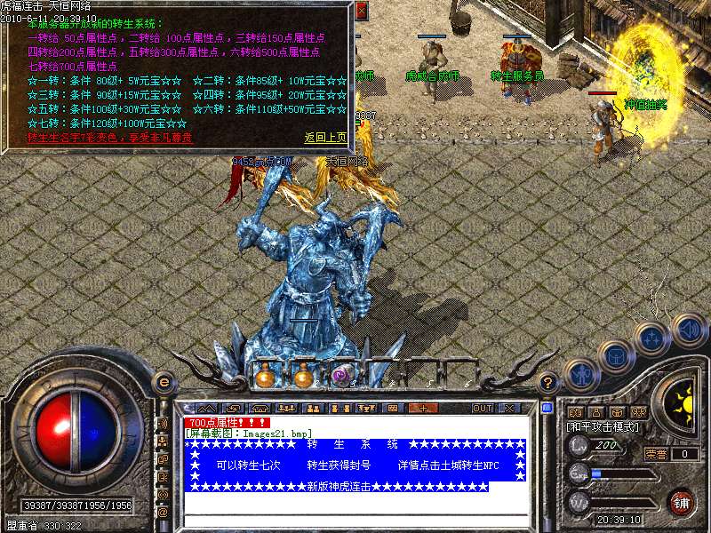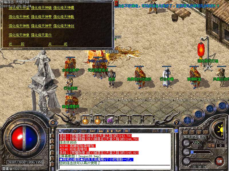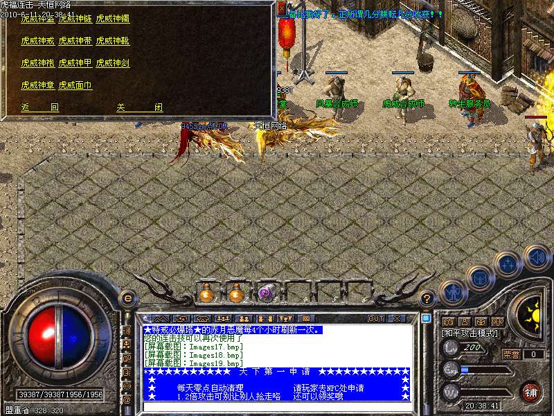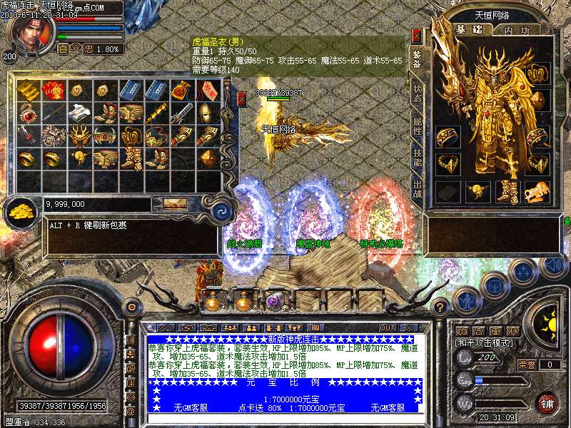 天恒网络;2010年暑假巨献—神虎双连击版-虎福争霸,加入沙巴克行会押镖系统,四级技能,必杀斗笠,必杀面巾,强化神兽 盛大副将 地图,装备采用全新盛大装备,高额元宝升级奖励, 不断刺激玩家练级激情,此版本是骨灰级玩家首选..