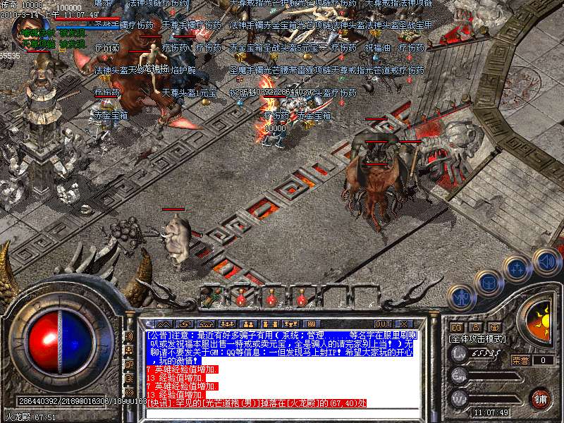 注意:最近有好多骗子有用(系统;管理......等名字在服里刷喇叭或发祝福本服出售一特戒或卖元宝,全是骗人的请完家别上当!)无聊请不要发关于GM:QQ等信息:一但发现马上封IP!希望大家玩的开心,玩的激情!