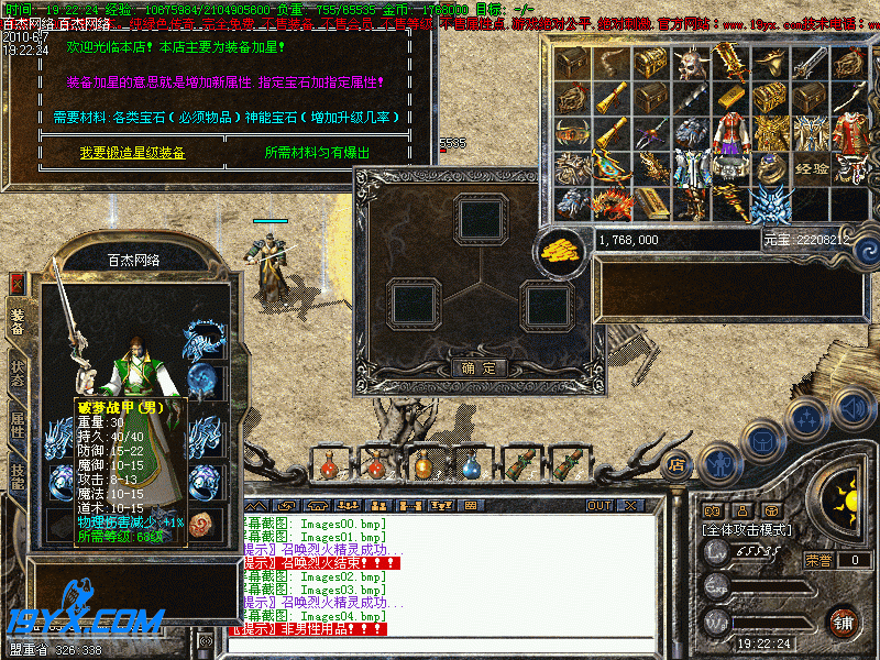 ★修正练级问题,练级变的非常容易,新手去蜈蚣打怪升级,基本是满屏的怪物 ★增加宝箱系统,可以开出本F所有装备 ★为普通玩家考虑,新增专暴元宝地图,只要你用心打,一天赚5000个元宝是没问题的 ★增加灵魂属性系统,有元宝的玩家可以去试下,效果是非常不错的~ ★增加坐骑系统,坐骑需要在天机老人那里合成,带防麻痹属性,帅就一个字 ★ 烟花之地,玩家可通过打怪获得九珠连环炮,或在商铺购买,燃放后有机会进入此地图,暴率是外面的3倍,暴本服终级装备 ★ 天邪圣地,共4层,装备暴率是外面的2倍,暴本服终级装备 ★ 幽灵禁地,装备暴率是外面的2倍,暴本服终级装备 ★ 飘渺神殿,此地图刷本服所有BOSS,暴本F所有装备,包括金牛装备 ★ 最新增加装备回收,大家可以把多余的装备换成50万~100万~200万~500万~等不同的经验~不用元宝练级也快 1 新增加稀有物品,稀有物品可以打造至+9,85级装备!打造成+9只需10件普通稀有装备!