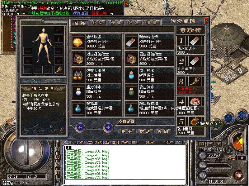 我们承诺的更新装备.一定会做到,让您花的每分钱都让您花的值得.本服绝不做内服,黑服,菜市场服.买的元宝,该多少就是多少.绝对没有讨价还价的余地.坚决不出售装备。请玩家们见证.!