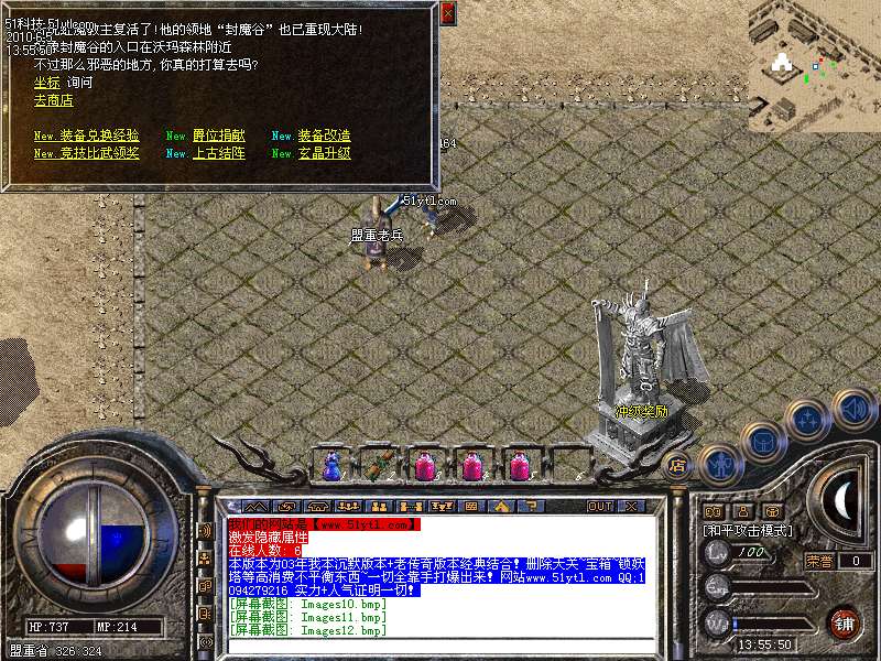 (*)开区第4天攻城,第一届攻城奖励6666元宝.以后每天都晚上攻城,攻城结束奖励300元宝.攻城不需要交头像