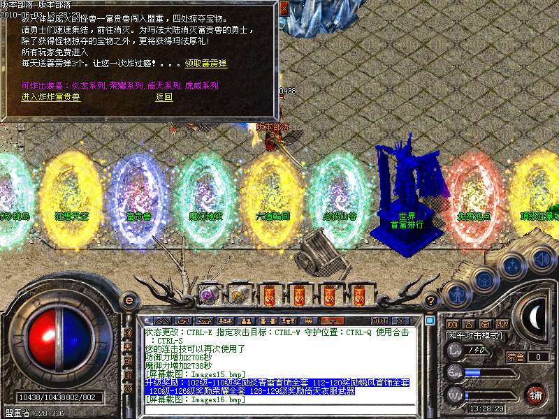 炸富贵兽活动:每天可以免费领取3个霹雳弹大。可炸出荣耀,虎威,必杀装备。