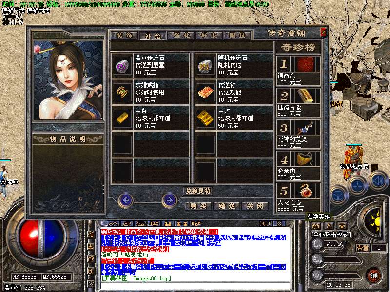 【公告】本服会员卡500元宝一个,就可以获得75级和极品赤月一套!会员命令为:@会员