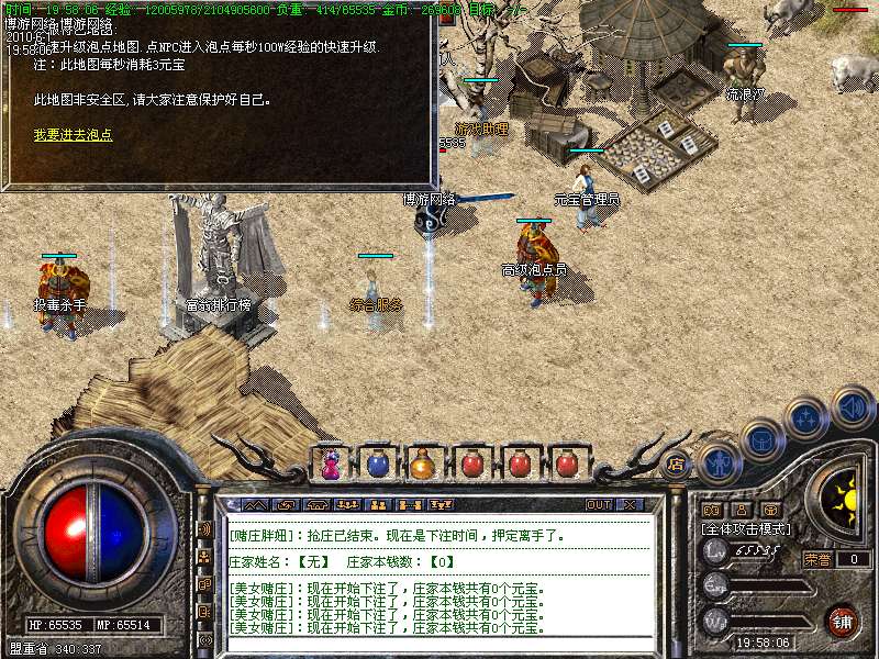 【装备回收】可回收玩家打出来的各种装备及各种新衣服.可以在土装备回收NPC那里换取经验和元宝.