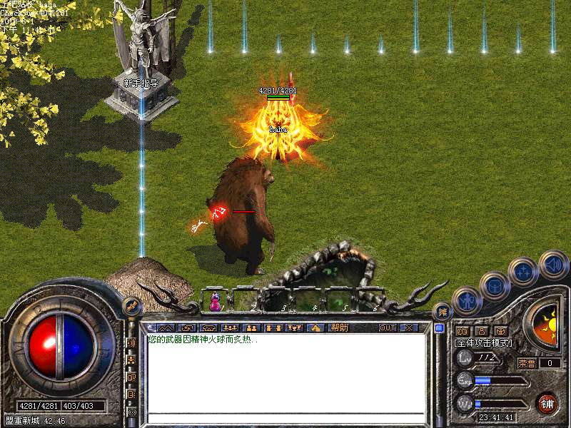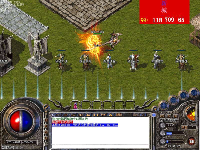 3、新人进区后为100级,有装备一键元宝回收系统,不冲元宝,可打装备回收卖元宝。新人升级可到比齐僵尸洞、练级圣地、石墓阵。
