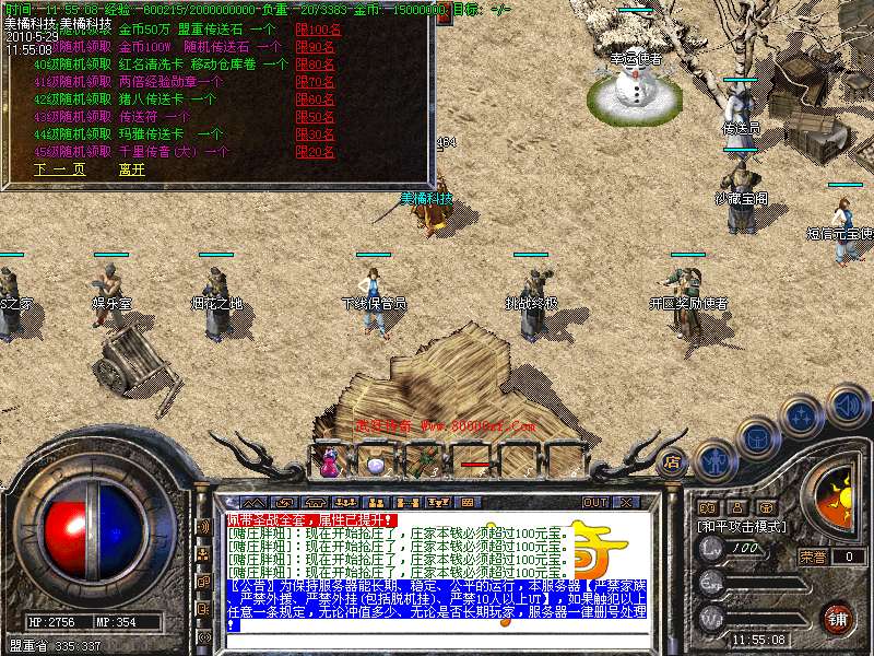 :服务器合区时将清理35级以下小号,武器升级也不要把武器仍里过夜,请注意保护好自己的物品,若发生意外服务器不负责任!