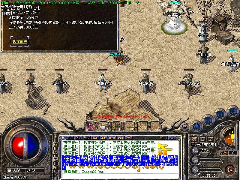 本服务器为长期服,拒绝家族形式玩家,禁止外援,45级以下禁止攻城!为避免被删号,家族玩家请绕行,谢谢合作!晚9点到10点之间,藏宝阁沙巴克秘史可以传送进入皇宫!
