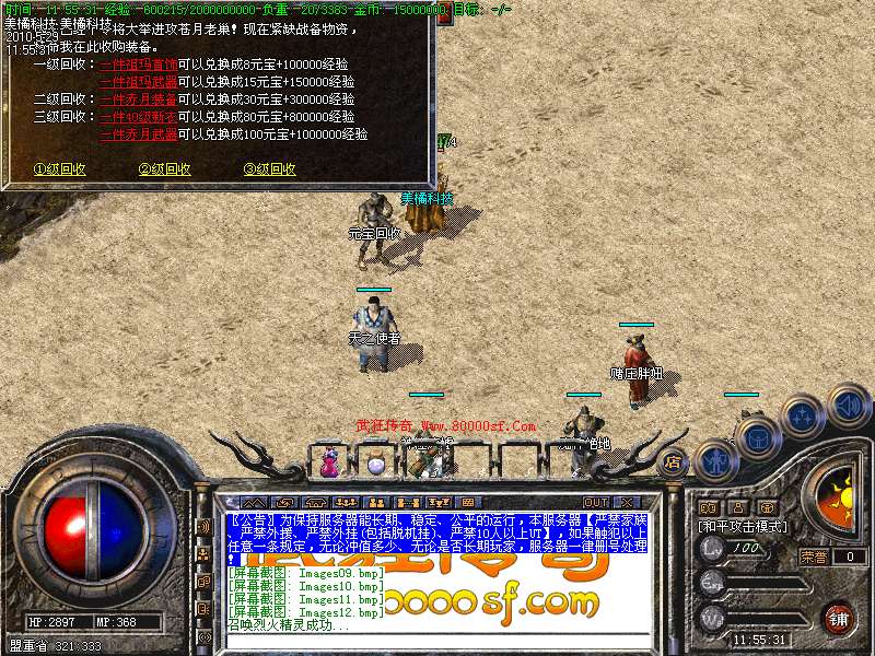 本服务器为长期服,拒绝家族形式玩家,禁止外援,45级以下禁止攻城!为避免被删号,家族玩家请绕行,谢谢合作!晚8点到10点之间,藏宝阁沙巴克秘史可以传送进入皇宫!