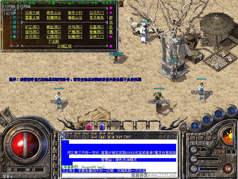 【怪物增加】土城药店每12小时刷新一只BOOS爆怪物攻城令牌1/1,封魔皇宫每12小时刷新一只BOOS爆终极武器爆率为5/1.