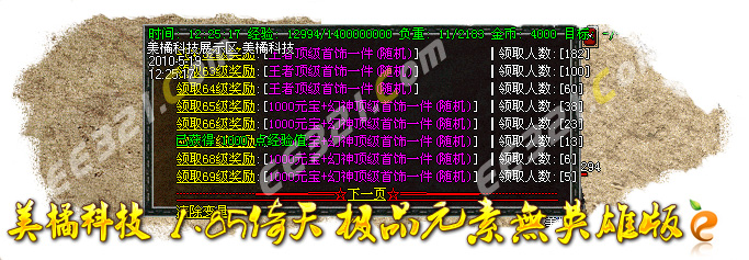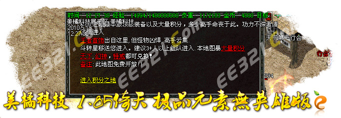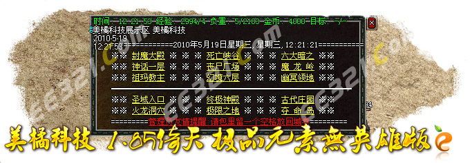 [56]特别提示:在每天的下午3点,6点,晚上10点,12点会开放武器专爆地图!必爆开天,镇天和玄天一把和天龙刀!进入地图需要赌筛子才可以进入!具体情况自己去体验!