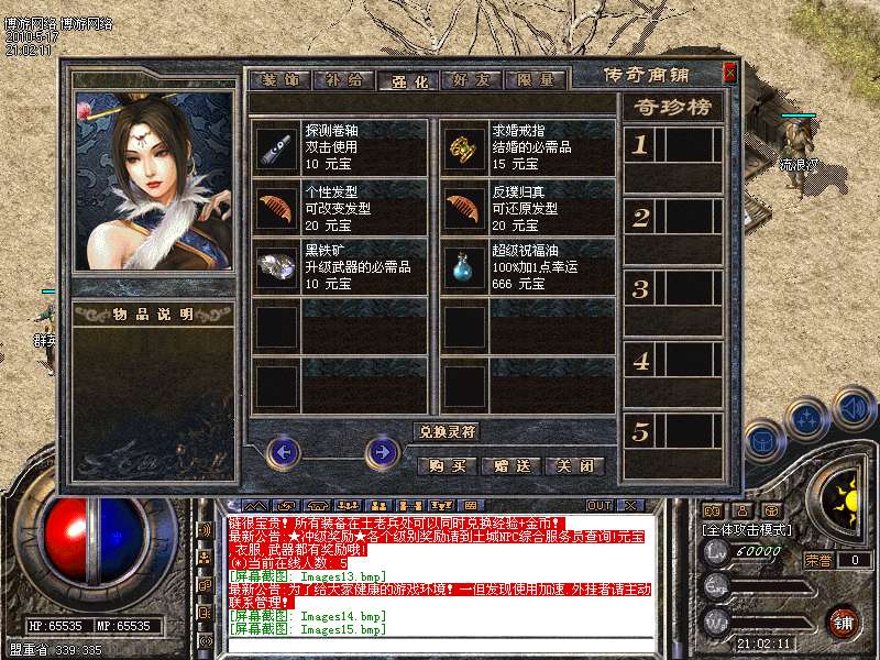 ★冲级奖励★各个级别奖励请到土城NPC综合服务员查询!元宝,衣服,武器都有奖励哦!
