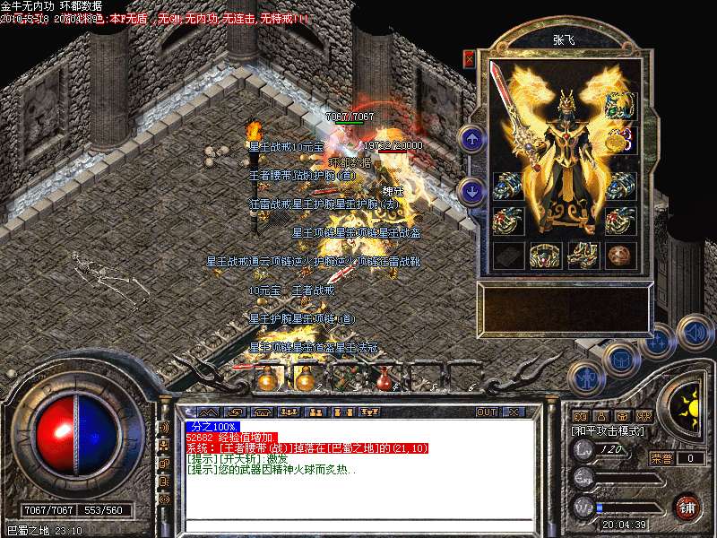 今日天下第一的元宝奖励丰厚 玩家们激情不断。休息间每秒15W经验 免费PK泡点每秒50W经验 激情不断。