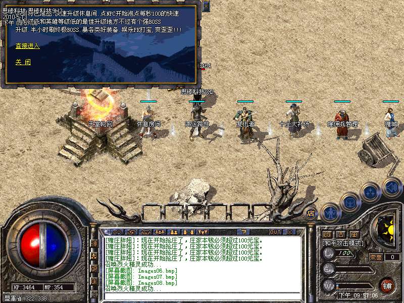 8.神秘之地: 此地图BOSS刷新超快,为服务器强烈推荐高级地图之一,需要五级雇佣兵进入