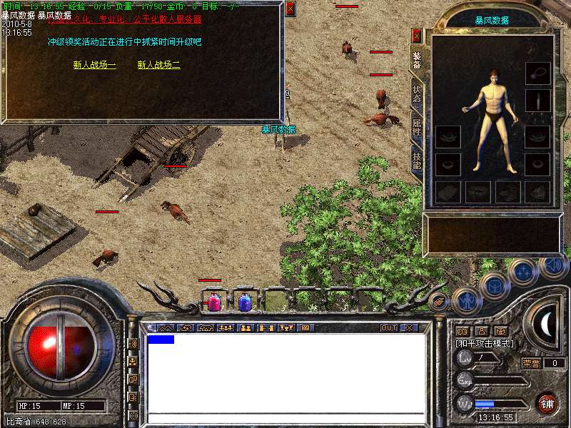 〖公告〗:服务器保证每位玩家的利益,服务器承诺不会为玩家刷任何装备和属性点。一切装备靠打,假如果你觉别人一个人打你4家人,就说GM帮他调属性你可以离开,人家PK用的是太阳包,攻击药水。你用上以后也会出来这种感觉