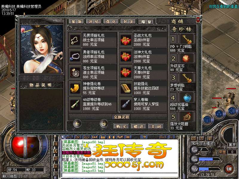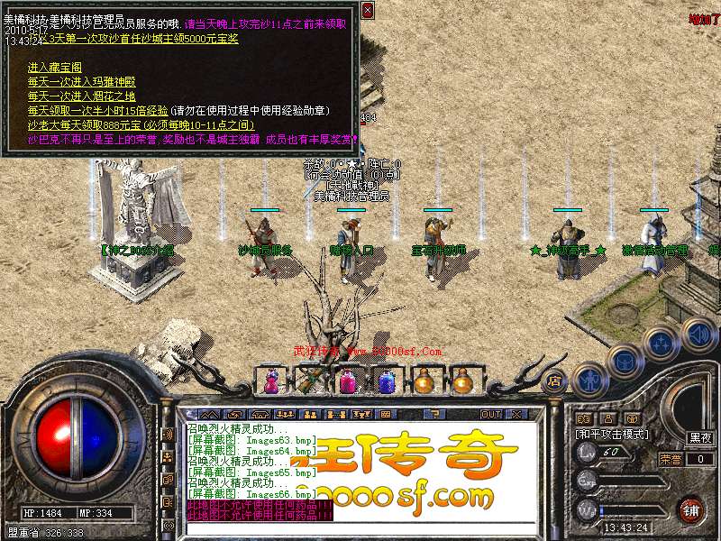 增加了3套时尚的装备,新加装备可以使用赤月装备完美合成,增加了沙城专用武器,此武器需要攻城后联系管理员获得!