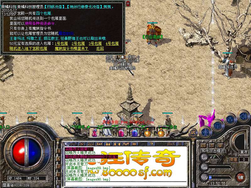 全国唯一的复古版本,唯一不用元宝就可以进入玛雅地图的游戏!真正的公平游戏``在盟重土城药店处会出现石墓尸王,只要您消灭掉就可以直接送您到玛雅神殿.出怪时间为90分中``就是说90分中才可以免费进入一次``